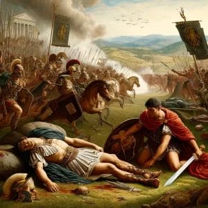 Durante la batalla de Filipos, no sólo Octavio buscó refugio tras ser derrotado, sino también Horacio, quien luchaba del lado de los republicanos bajo el mando de Bruto y Casio. En el caos del enfrentamiento, Horacio abandonó su espada y su escudo en el campo, un gesto que él mismo relataría en sus obras posteriores. Este acto, que en la cultura romana podría verse como un signo de cobardía, fue reinterpretado por Horacio en sus escritos como un momento de vulnerabilidad humana y de reflexión. Así, a través de su poesía, convirtió su huida en un tema de meditación literaria, siguiendo la tradición de los poetas guerreros griegos que también enfrentaron derrotas similares.